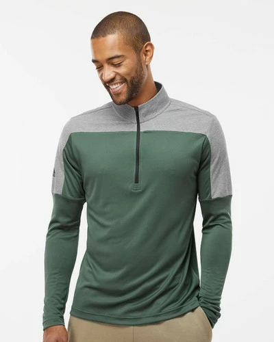 - Heather colorblock across shoulders